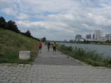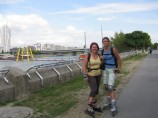 Jak jsem už psala na nástěnku, kolem Dunaje je perfektní stezka, lépe řečeno spletice širokých stezek, na kterých není problém najezdit 40km. Kolem stezek je spousta atrakcí od trampolín po dětské pískoviště i vodní lyžování a na jednom místě jsou shluknuty moc dobré hospůdky s místní dobrůtkou - žebírka a dýňová polévka..ať už dobrůtka či ne, vyzkoušet se musí =o)