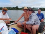 Voda v ramenách je pomaly tečúca, nie ako v Maďarsku, naviac medzi jednotlivými ramenami sú prepážky, ktoré treba prenášať. V sobotu by sme po ramenách jazdili na ľahko, bez batožiny, Dve noci by sme spali na jednom mieste r.km 1826. Na vode nie je toho toľko, ale individuálne sa dá toho dosť najazdiť a popozerať.