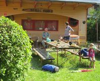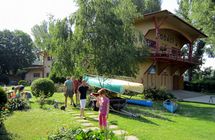 odloženie vleku s loďami v záhrade u Klokana, občerstvenie Duna vendegló,