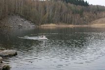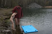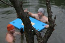 Tak voda měla 5.1 stupňů. Celá naše hra trvala přesně 16 minut. Pak jsme si zaplavali a vylezli ven.