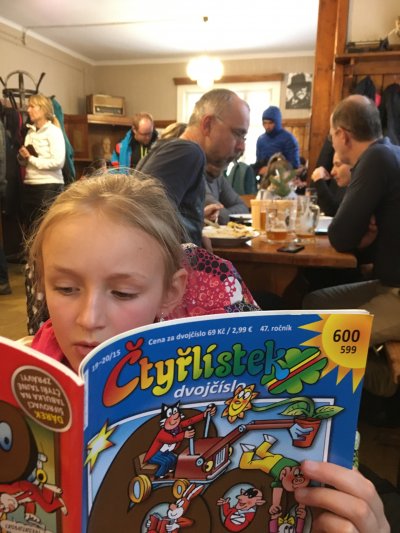 Pro info, jak vypadal loňský ceník: dospělý: 450,- ; dítě bez postele, které snídá a NEvečeří: 120,-;  „mimino“ bez postele, které NEjí vůbec: 80,-;  pes: 80,-; Silvestrovský večer: 150,- . Jako vloni zkusím domluvit kategorii "dítě, které NEMÁ postel, ale SNídá i VEčeří". Myslím, že jí účtoval za 200,-.